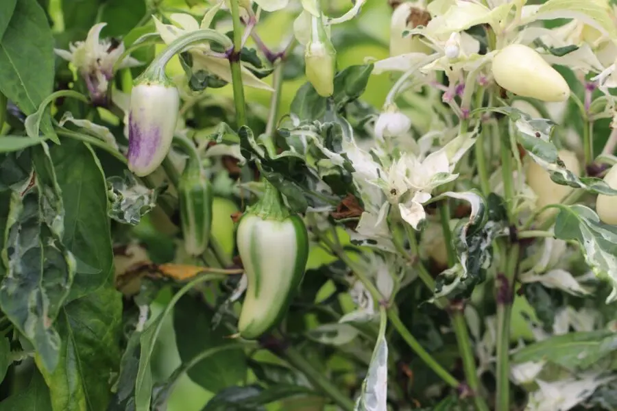 🌶️ Unik jalapeño-mutation med variegerade blad och vitrandiga frukter – både vacker och smakrik!